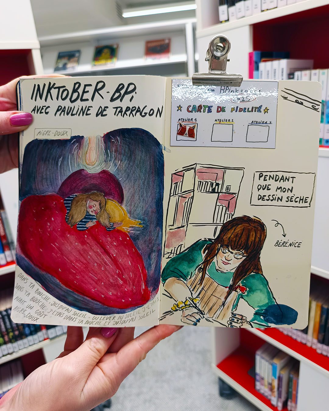 Inspiré du défi créatif international Inktober qui invite chaque année les dessinateur·ices du monde entier à réaliser un dessin par jour pendant tout le mois d’octobre à partir d’un mot imposé, le BpInktober propose une version revisitée du challenge, avec une liste de mots inédite conçue spécialement pour la Bpi par Pauline de Tarragon.