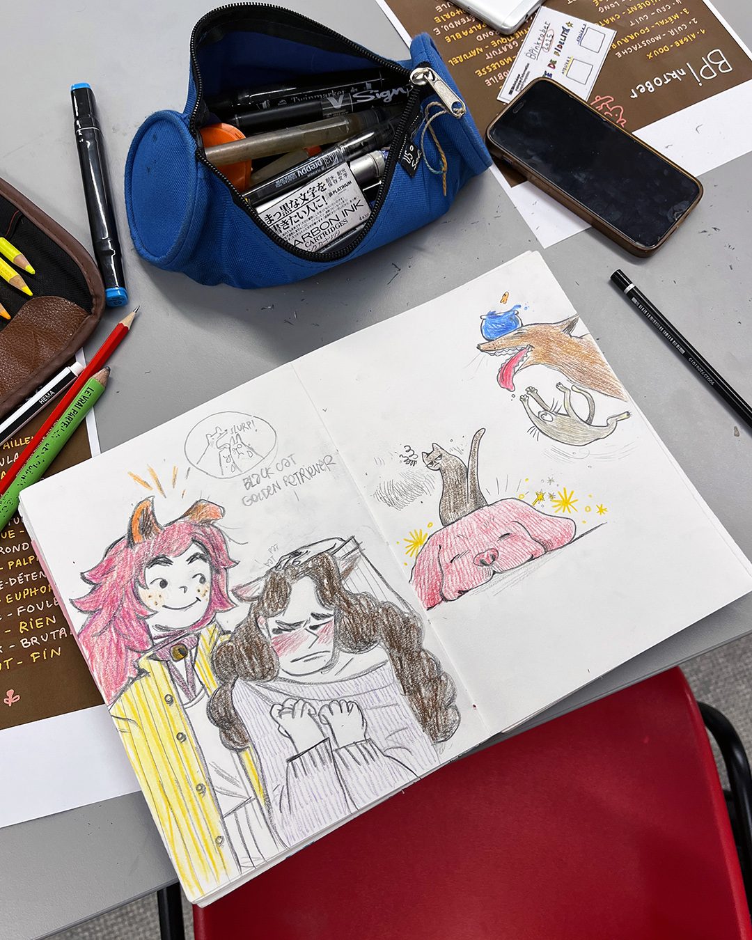 Trois ateliers de dessins ont eu lieu, l’occasion de créer ensemble, d’échanger des conseils de création, s’inspirer mutuellement, et explorer de nouvelles techniques… avec des dessinateur·ices que l’on adore : Pauline de Tarragon, Lucie Bryon et Tamos le Thermos.