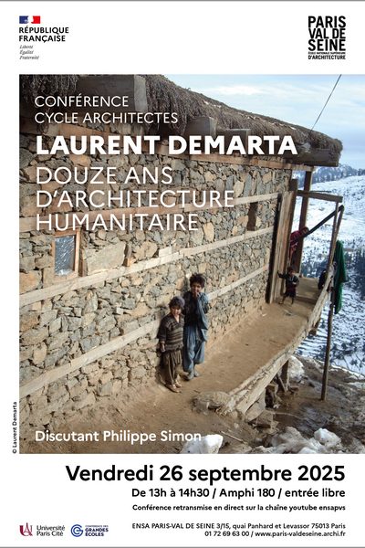 Dans le cadre du cycle de conférences “Architectes”, l’ENSA Paris-Val de Seine reçoit Laurent Demarta. Pendant douze ans, il a travaillé comme architecte dans le monde humanitaire en se spécialisant peu à peu en construction parasismique vernaculaire. Durant ses années humanitaires, Laurent Demarta a travaillé au Pakistan, en Haïti, au Tadjikistan, au Panamá, au Libéria, et ailleurs encore, pour des structures aussi variées que MSF, la Croix-Rouge, Architecture & Développement, le Gouvernement suisse, Caritas ou des ONG locales.
